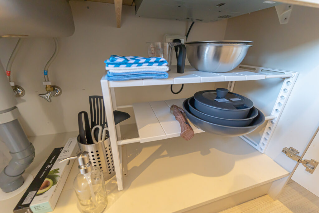 There is also a kitchen, so it is perfect for long-term stays!